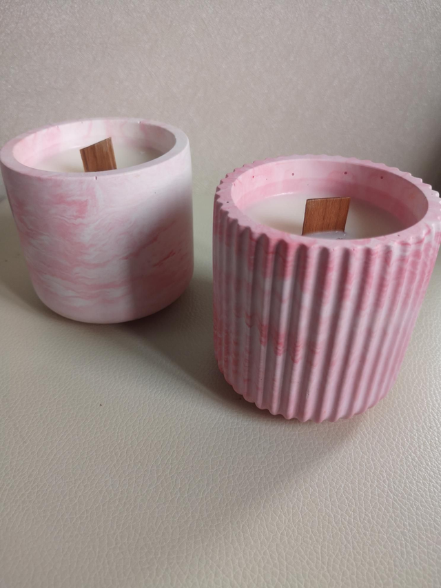 Bougie douceur rosé , son contenant en résine (NatuResin) est un système polymère acrylique / résine minérale monocomposant / bicomposant à base d'eau.
