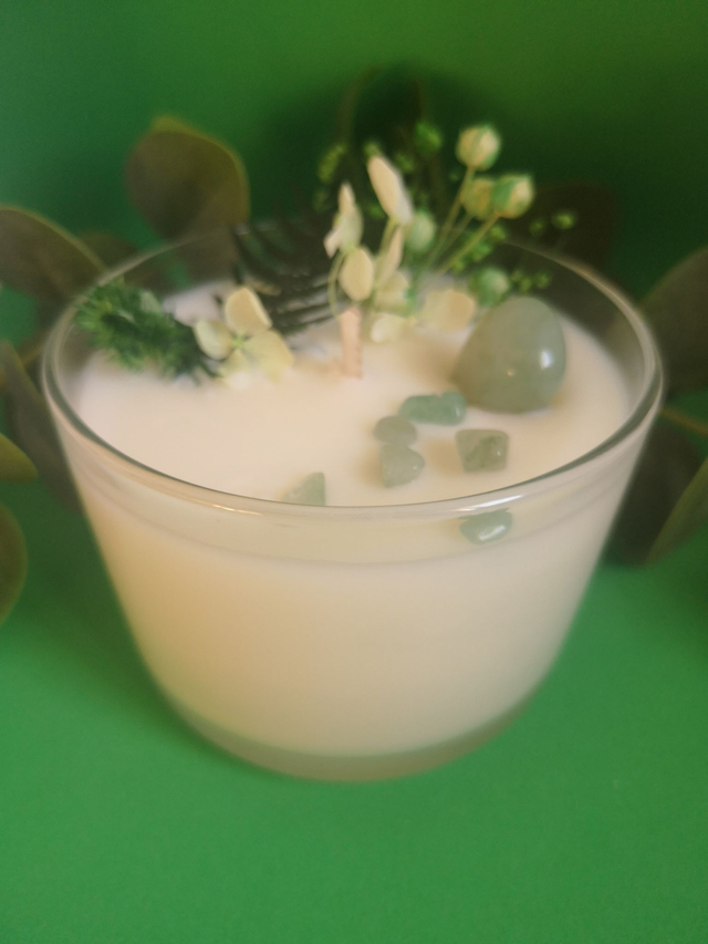 Bougie en cire de soja naturelle senteur bergamote, pierre d'Aventurine