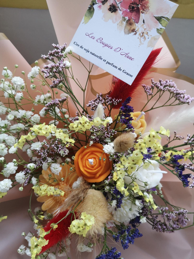 Accompagné de fleurs séchées, ce bouquet fera son effet lors d'une invitation ou faire plaisir.