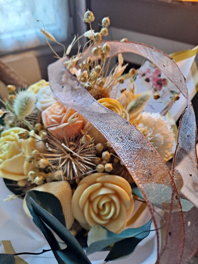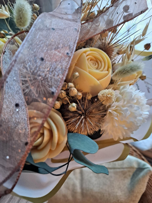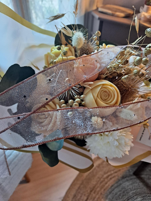 Bouquet 9 fleurs beige,jaune, blanche senteur rose vanillé