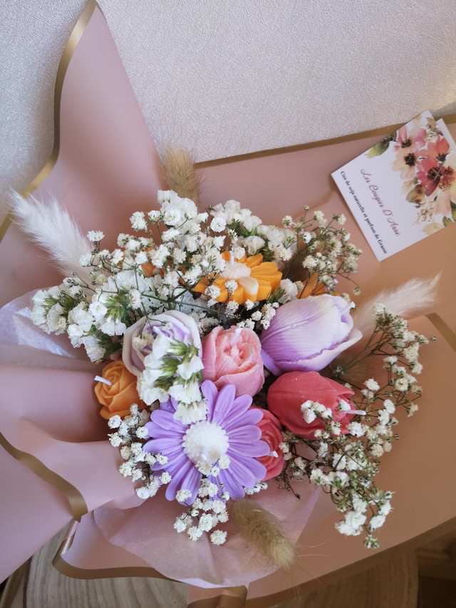 Chaque élément de ce bouquet est fait à la main avec amour dans notre atelier, donnant à votre composition une touche personnelle et chaleureuse.