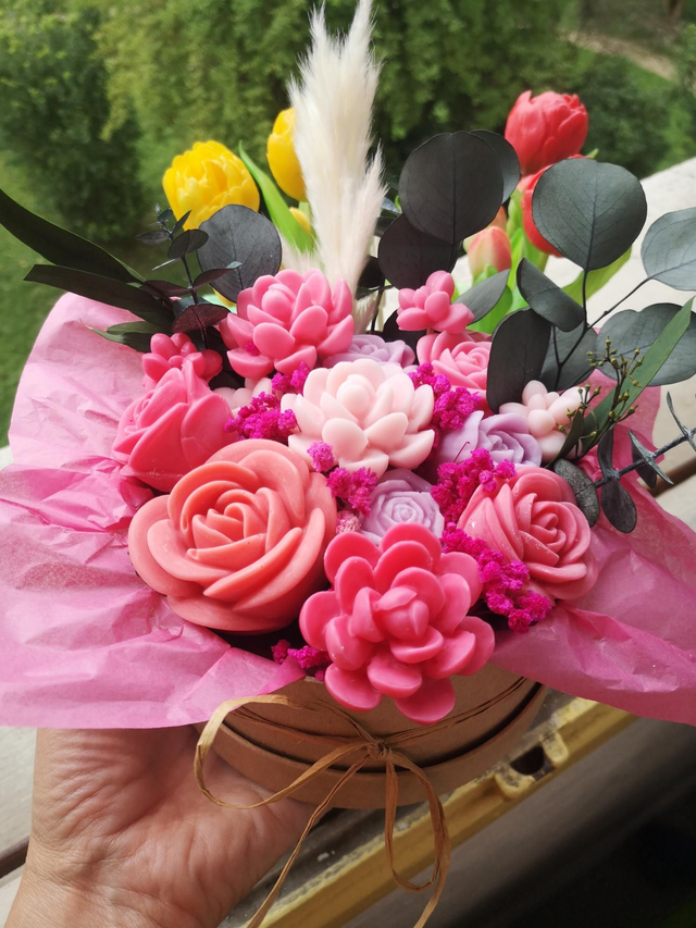 Composition florale 14 fleurs parfum rose vanillé